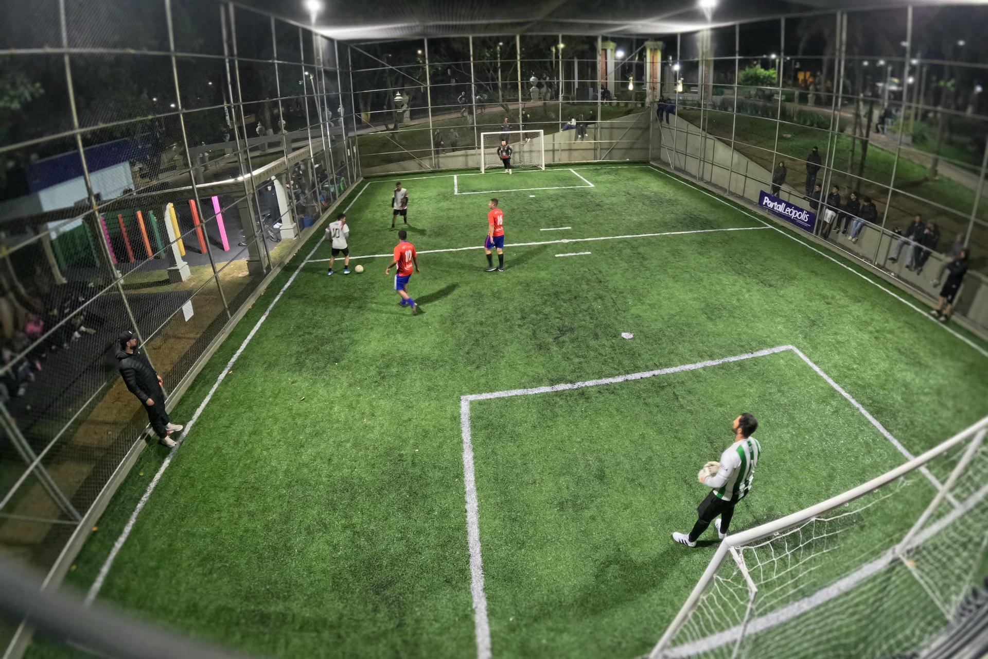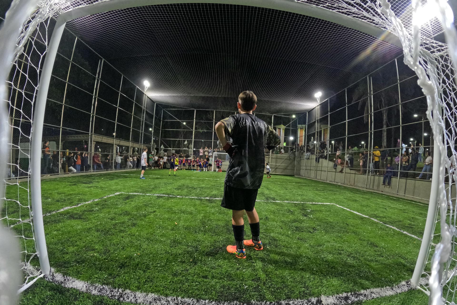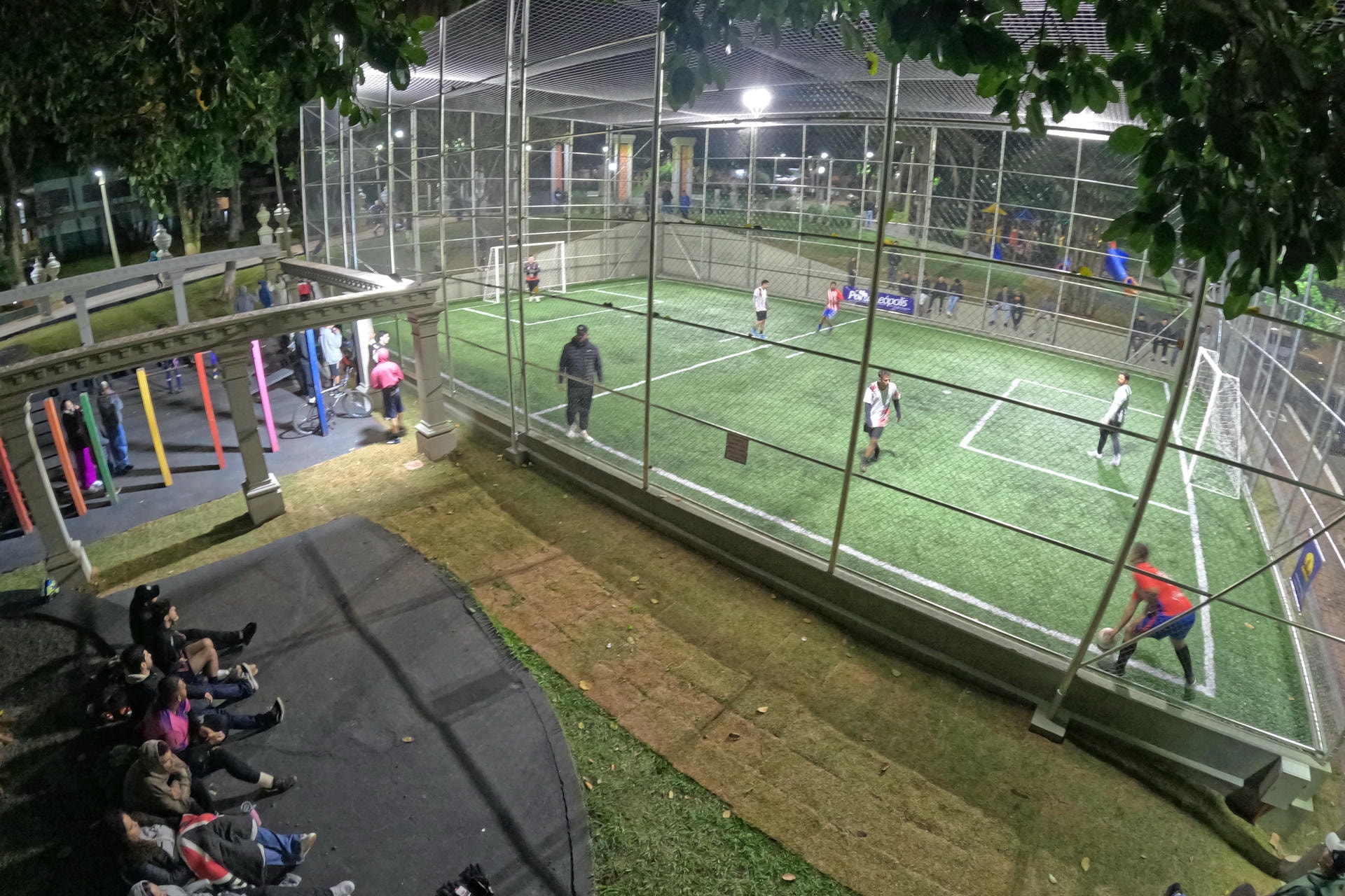Sim, o campo conta com um sistema de iluminação que permite a sua utilização durante a noite, ampliando o acesso para quem trabalha ou estuda durante o dia.