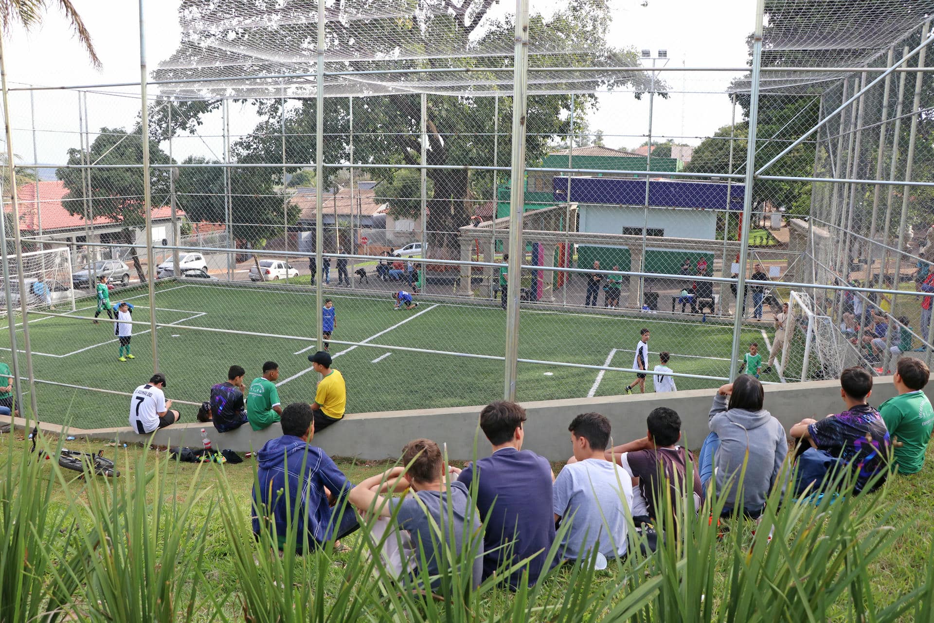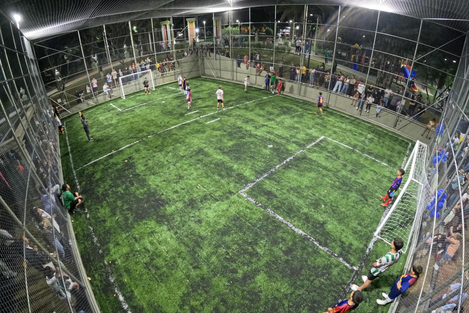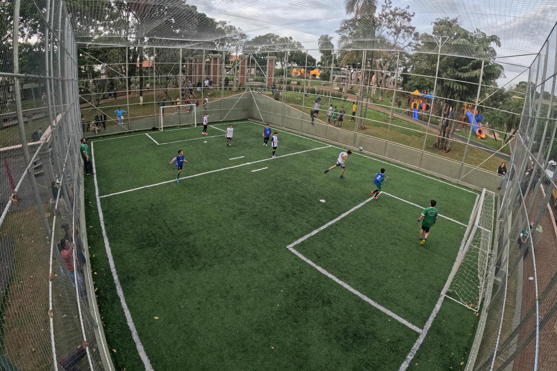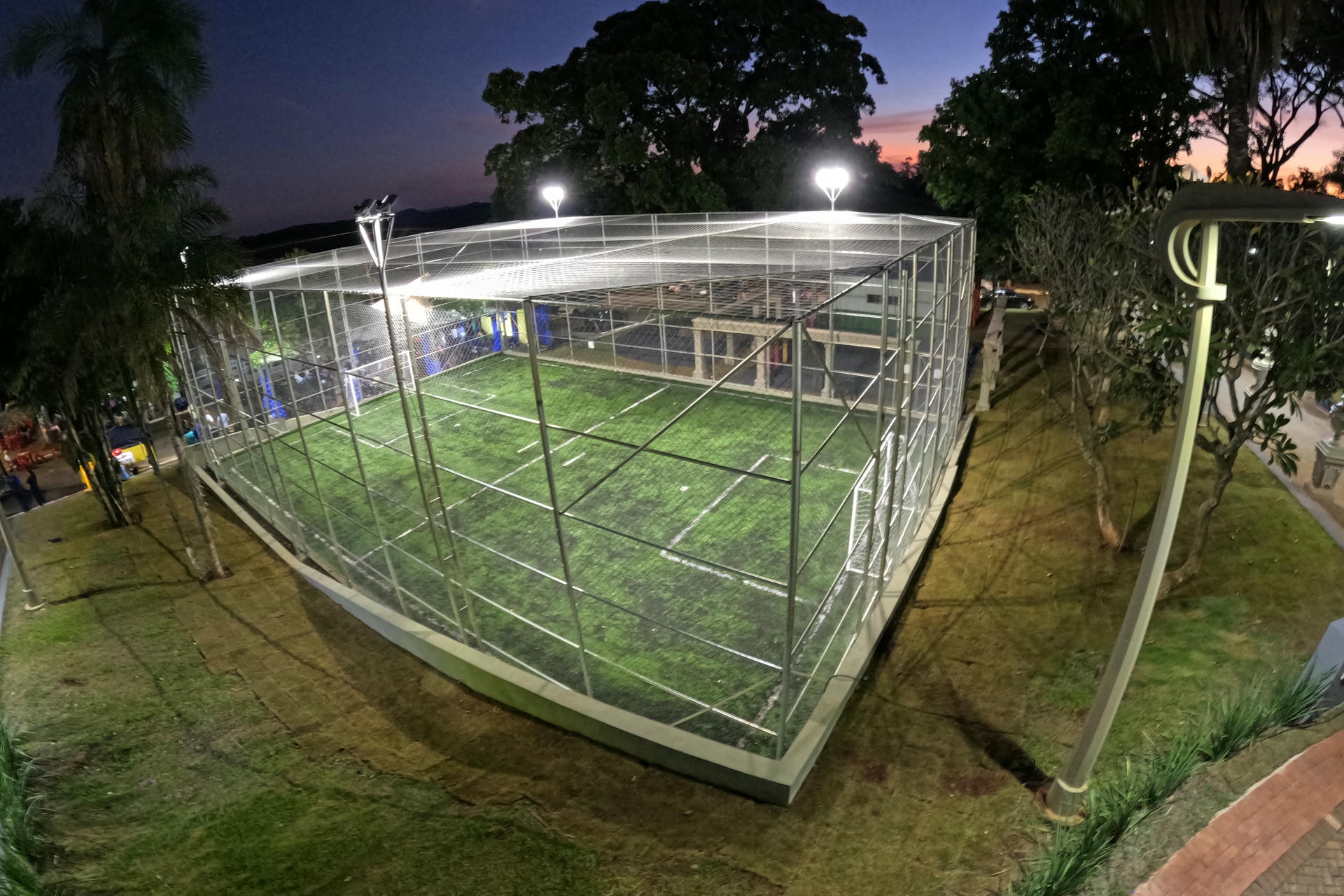 Sim, o campo conta com um sistema de iluminação que permite a sua utilização durante a noite, ampliando o acesso para quem trabalha ou estuda durante o dia.